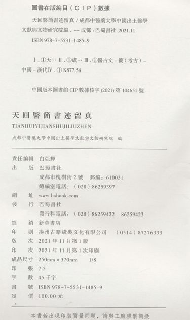 | 编者 | 成都中医药大学中国出土医学文献与文物研究院 |