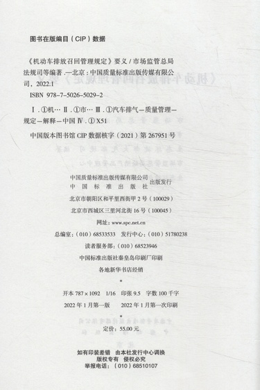 | 编者 | 市场监管总局法规司//市场监管总局质量发展局//生态环境部大气环境司//市场监管总局缺陷产品管理中心//生态环境部机动车排污监控中心 |