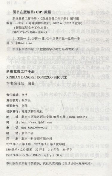 | 编者 | 新编党费工作手册编写组 |