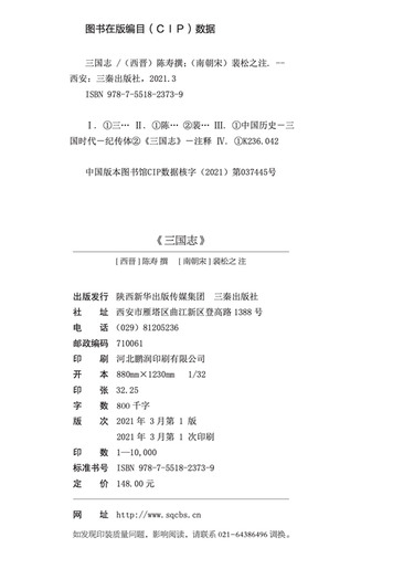 | 校注 | 校注:(南朝宋)裴松之 |