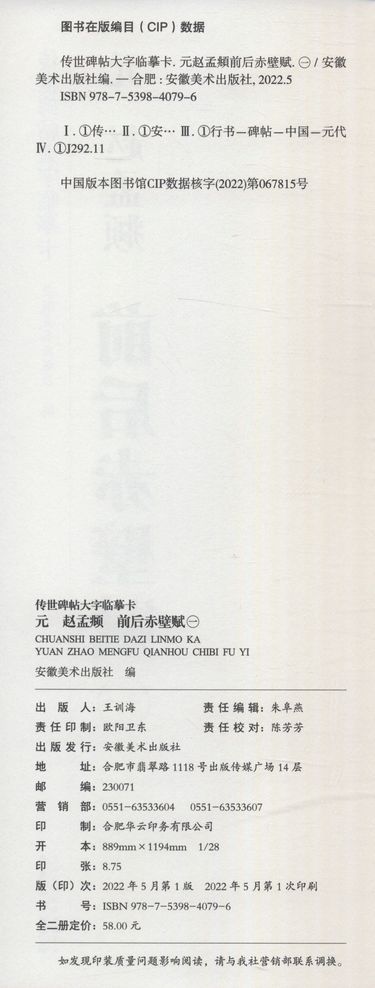 元赵孟頫前后赤壁赋(共2册)/传世碑帖大字临摹卡