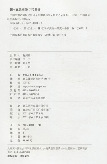 | 出版社 | 中国社会科学出版社 |