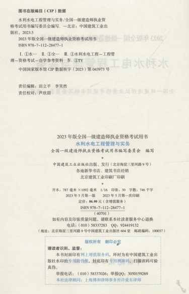 水利水电工程管理与实务(1F400000)/2023年版全国一级建造师执业资格考试用书