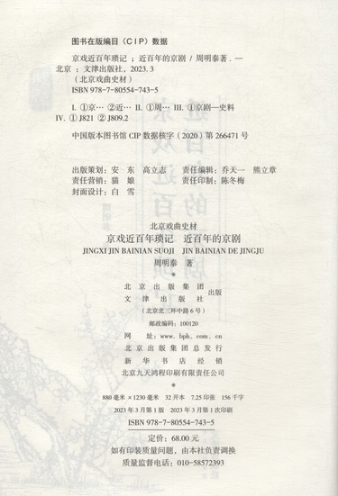 | 丛书名 | 北京戏曲史材 |