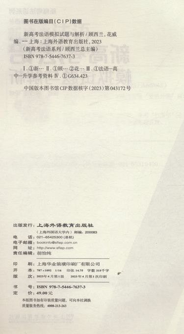 | 出版社 | 上海外语教育出版社 |