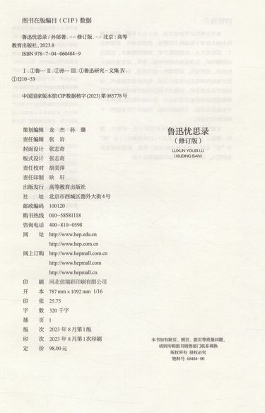 | 商品编码(ISBN) | 9787040604849 |