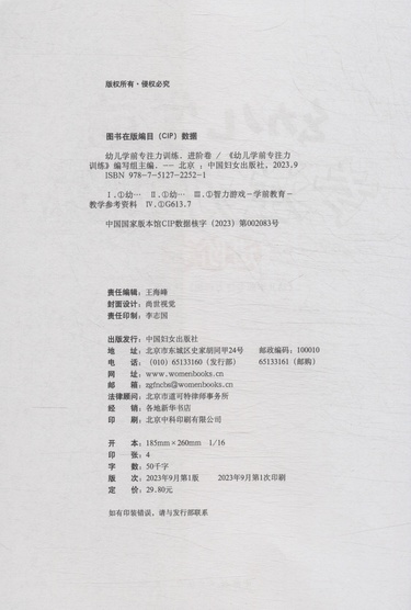 | 编者 | 幼儿学前专注力训练编写组 |
