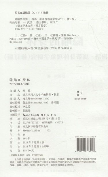 隐喻的身体(梅洛-庞蒂身体现象学研究修订版)(精)/崇文学术文库