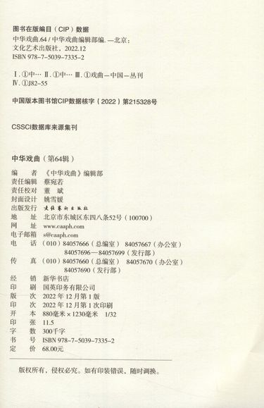 | 编者 | 中华戏曲编辑部 |