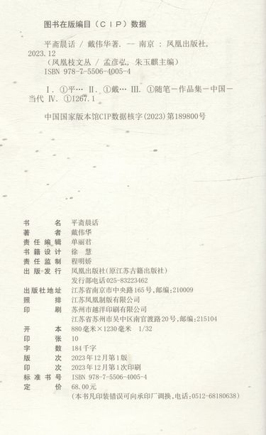 平斋晨话(精)/凤凰枝文丛