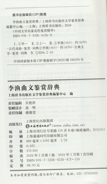 | 编者 | 上海辞书出版社文学鉴赏辞典编纂中心 |
