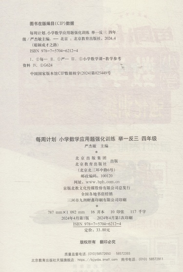 小学数学应用题强化训练举一反三(4年级)/每周计划聪颖成才之路