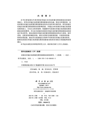西部农村地区高质量发展的创新驱动机制研究