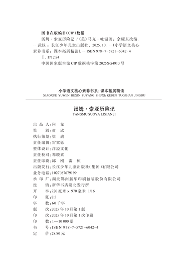 汤姆·索亚历险记 六年级下册 小学语文核心素养书系
