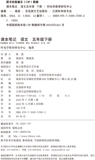 【时光学】26 课本笔记语文 (五年级下册)RP新封面