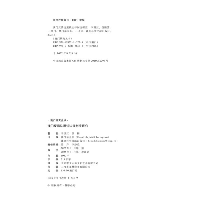 澳门反清洗黑钱法律制度研究