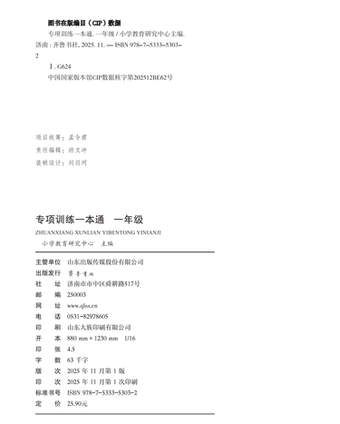 寒假作业专项训练一本通一年级