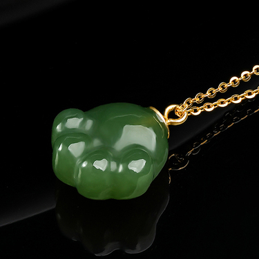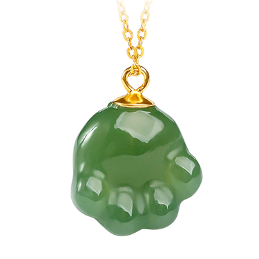 和田玉猫爪吊坠锁骨链925镀金银