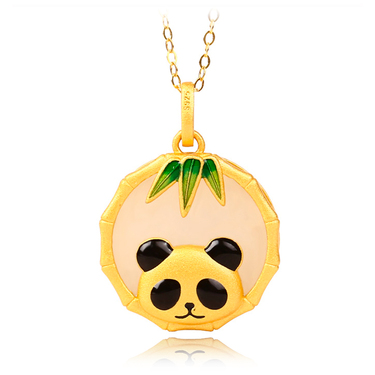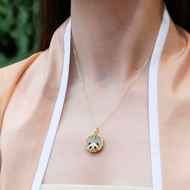 和田玉熊喵吊坠925镀金银项链