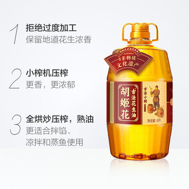 胡姬花古法小榨花生油4L
