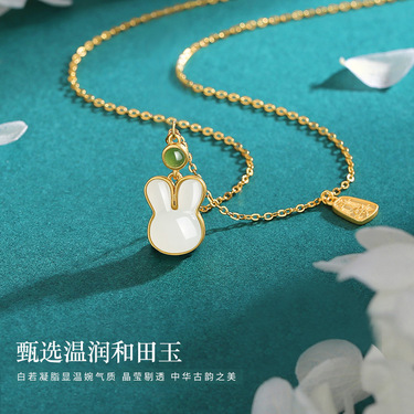平安喜乐玉兔项链