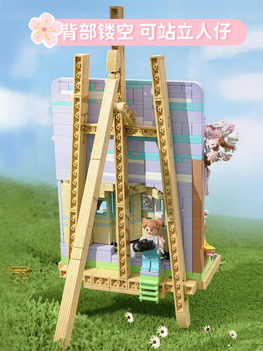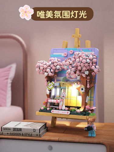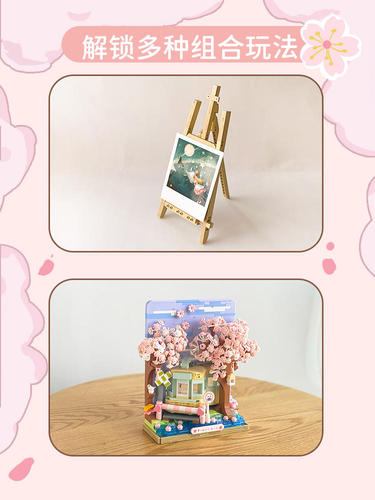 未及 樱樱列车 积木花 樱花树 立体装饰画 国产玩具