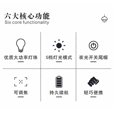 迷你调焦强光手电筒 铝合金材质黑色款