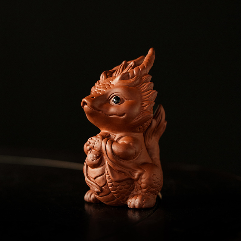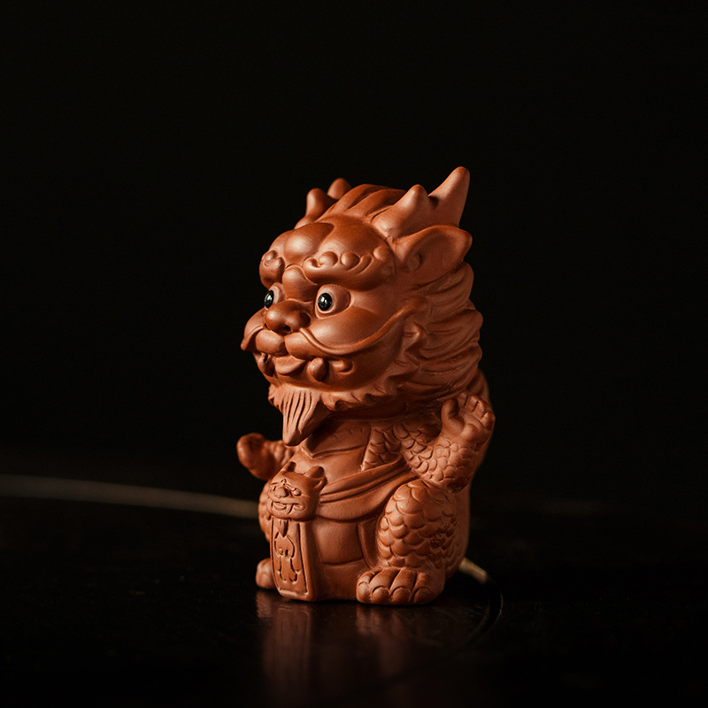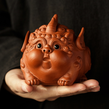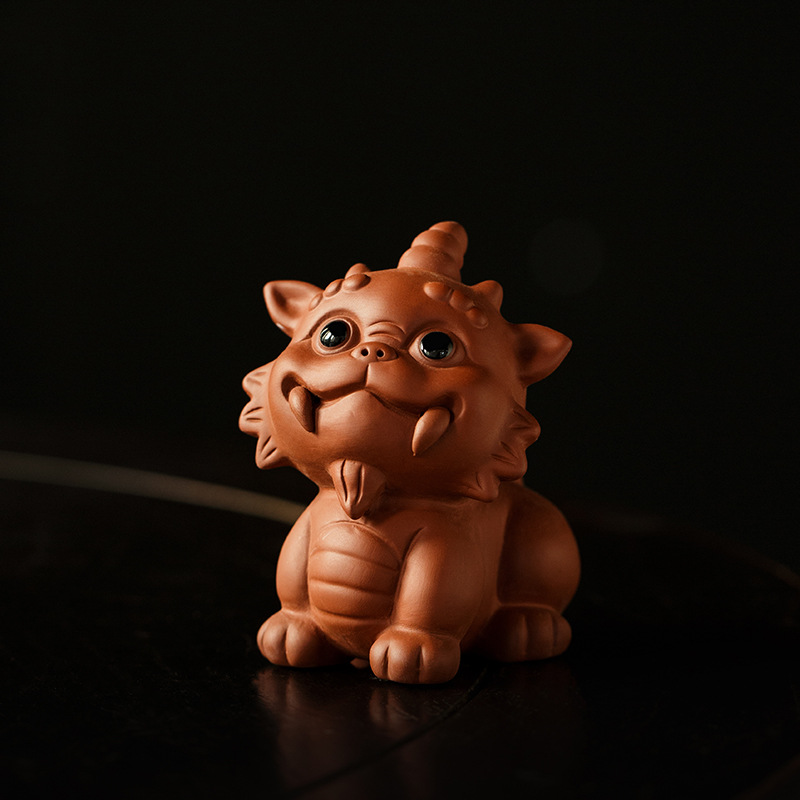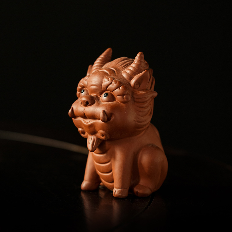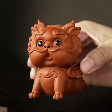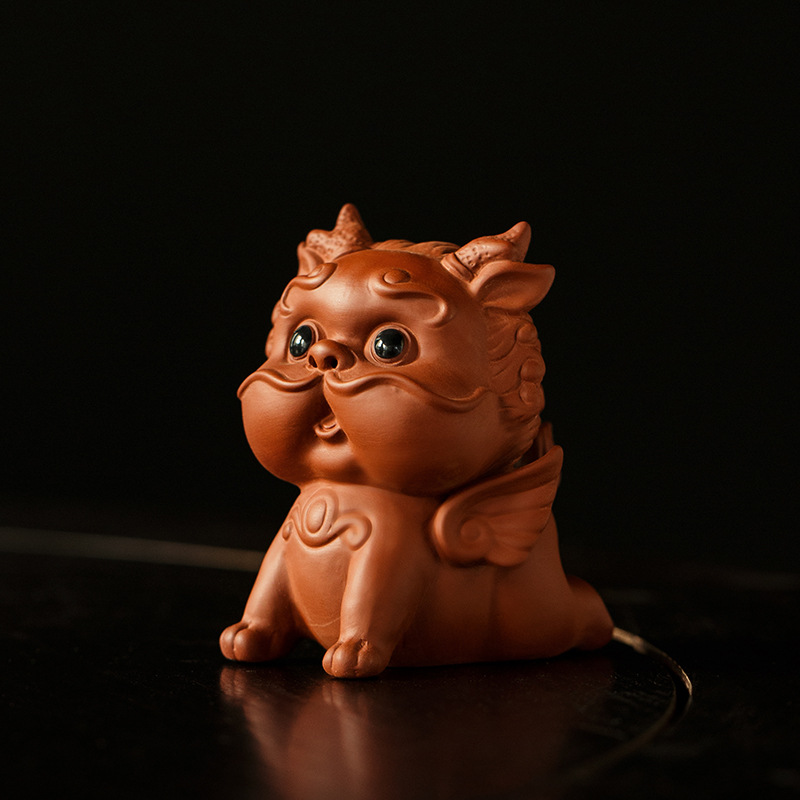 桃白紫砂貔貅茶宠摆件