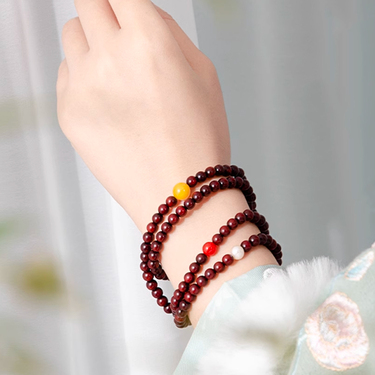 小叶紫檀文玩长串搭配珍珠蜜蜡南红