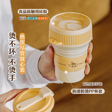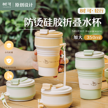 树可防烫硅胶折叠水杯大号两个装(豆绿和芽黄)