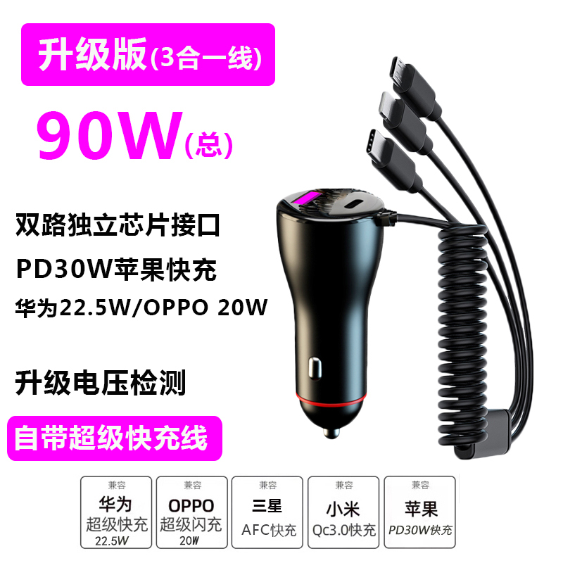 XAYVG多功能一拖三超级快充车载充电器