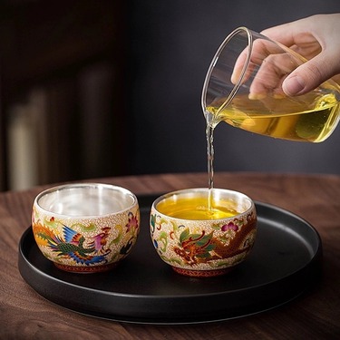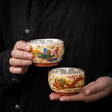 非遗 龙凤呈祥珐琅彩鎏银对杯