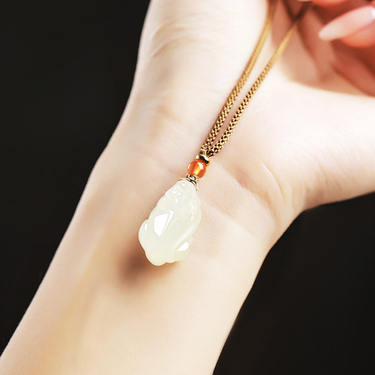 和田玉白玉貔貅吊坠一物一证