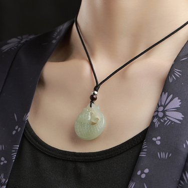 幸运锦鲤和田玉青白玉吊坠