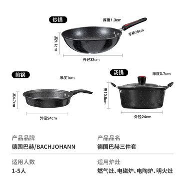 德国巴赫麦饭石不粘锅三件套BH-MB01