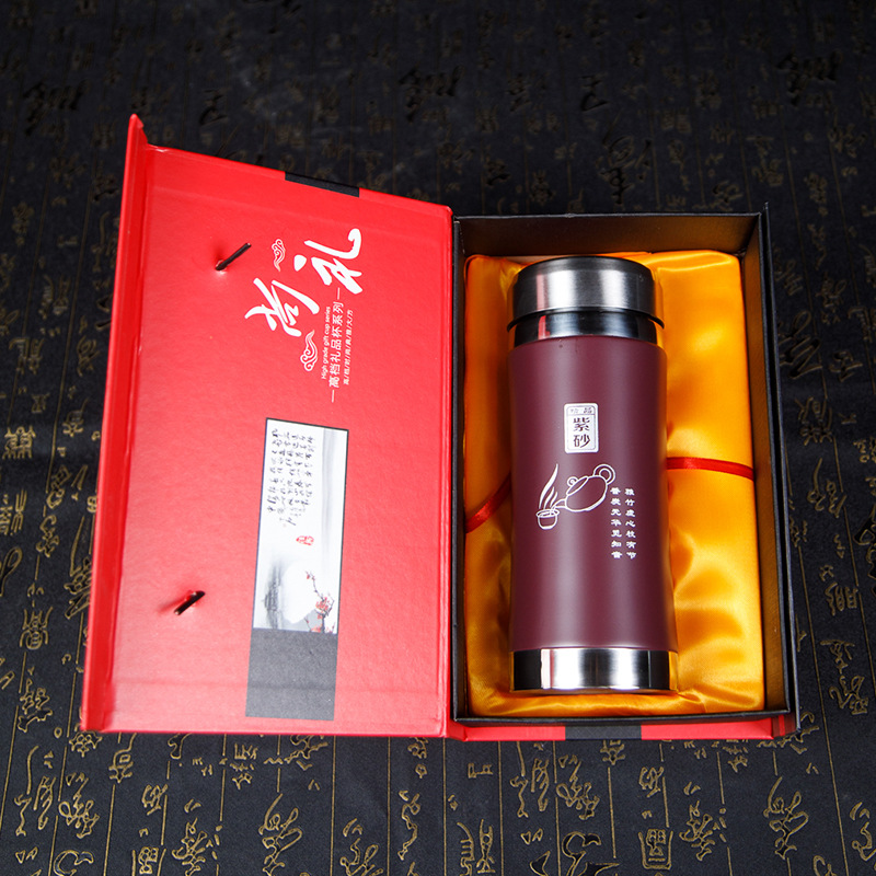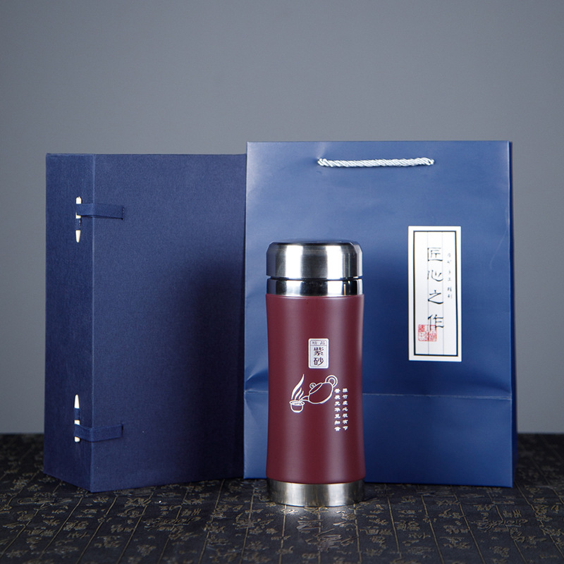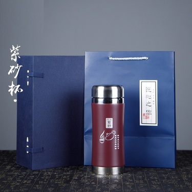 檀轩阁大容量紫砂内胆茶水分离杯礼盒装