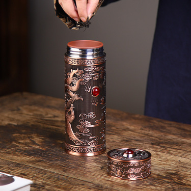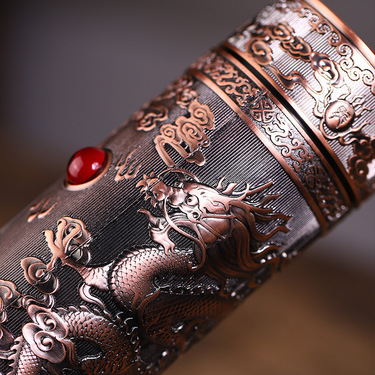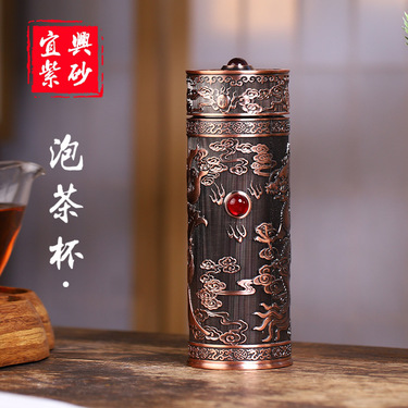 檀轩阁宜兴龙凤戏珠紫砂茶杯礼盒装