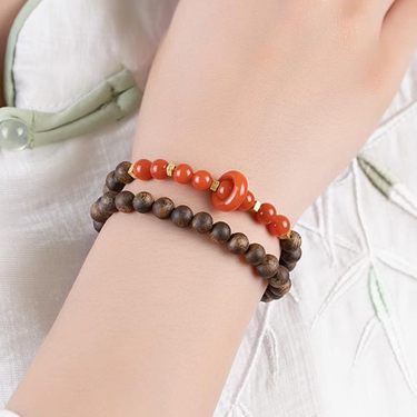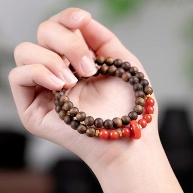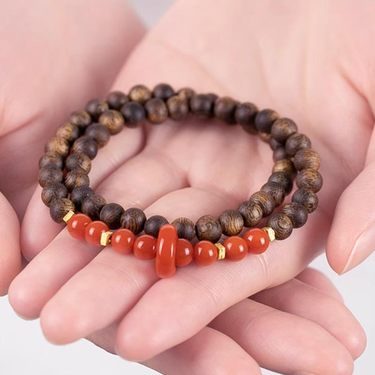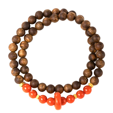 南红双圈沉香木手串