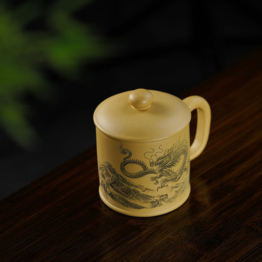 雨中砂宜兴紫砂腾龙盖杯办公杯