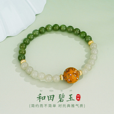 新中式天然和田玉碧玉手串DQ1112S