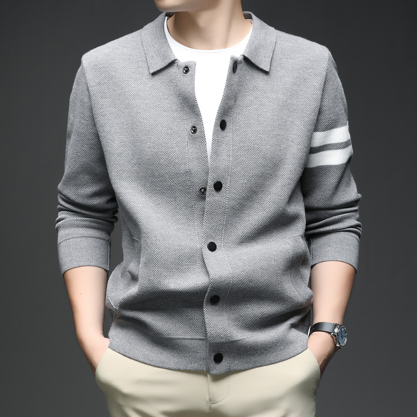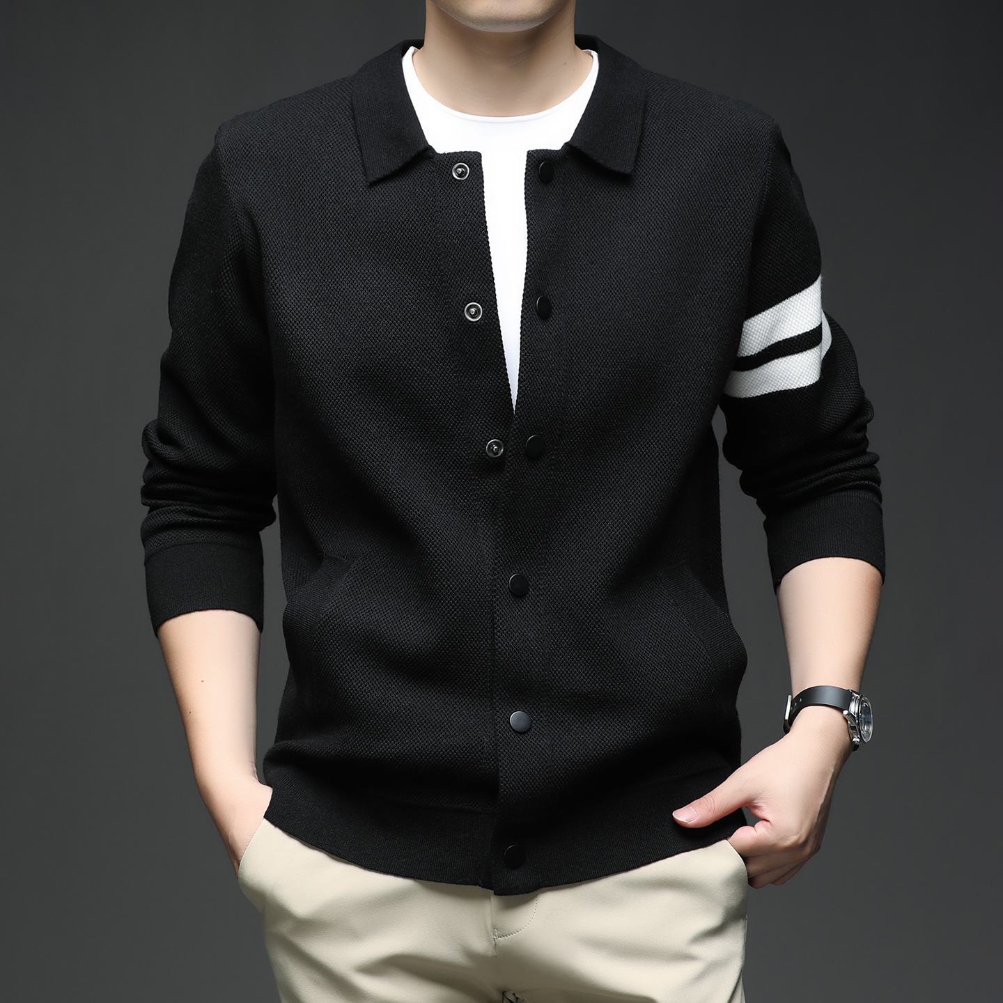 MLBA-MZKSSA男士开衫纯色针织外套8633