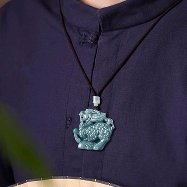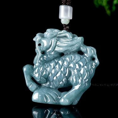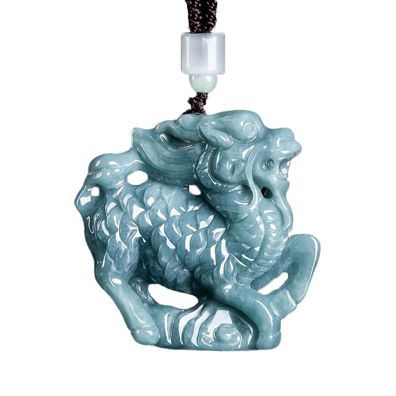 天然翡翠蓝水立体祥云麒麟吊坠DW101