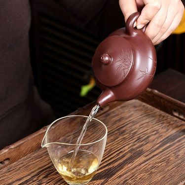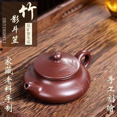 清砂壶影宜兴原矿紫朱泥竹影斗笠紫砂壶礼盒装