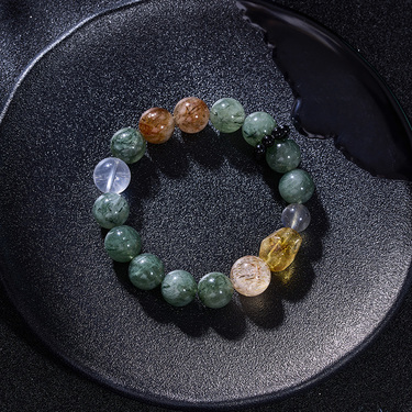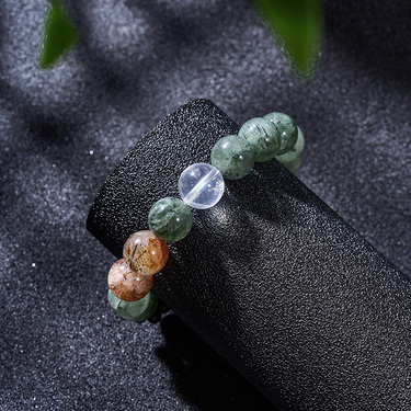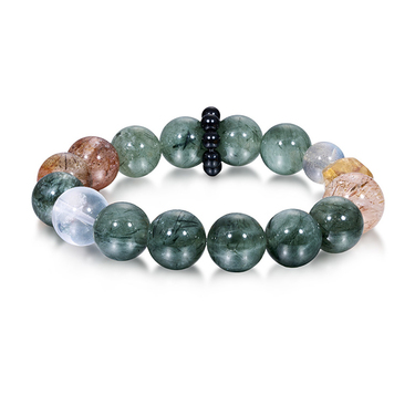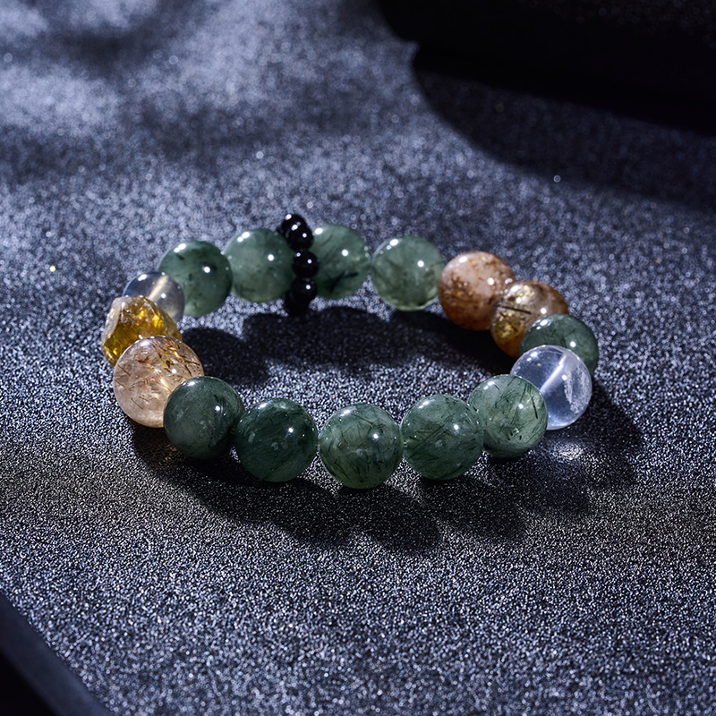 翠影流光 黑金超七绿发晶多彩手串-0240