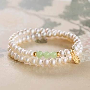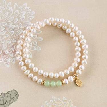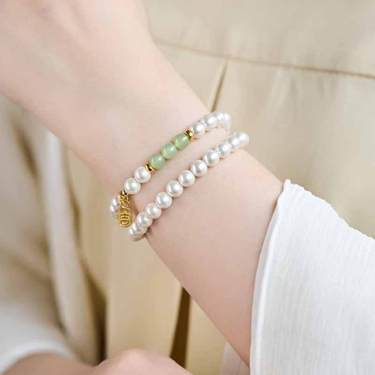 天然近圆淡水珍珠叠戴手串