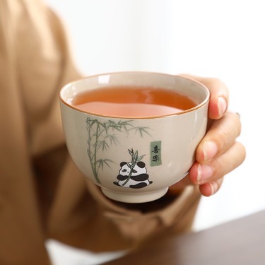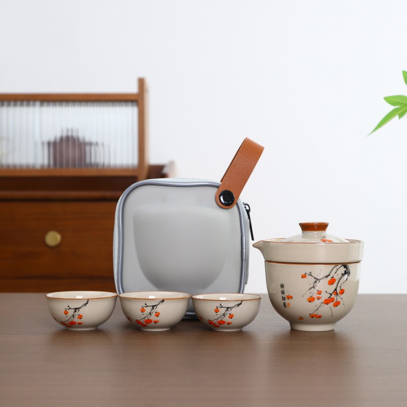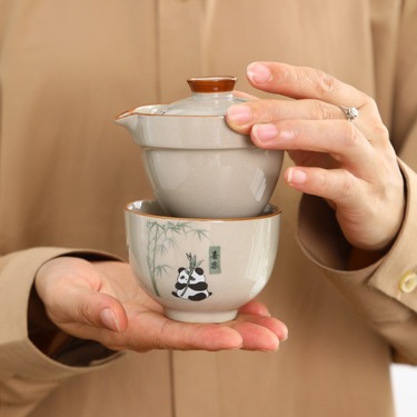 桃白便携式草木灰熊猫旅行茶具一壶四杯