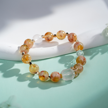 焦糖玛奇朵 黄白奶三色水晶手串-0011