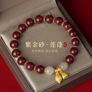 和田玉两世欢紫金砂莲蓬手链礼盒装DQ0357S