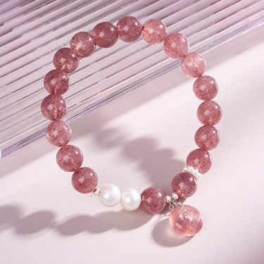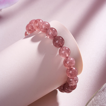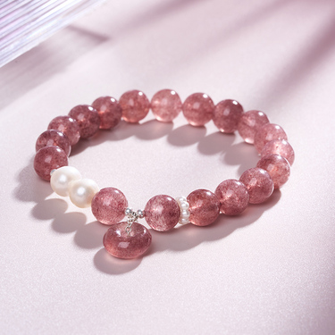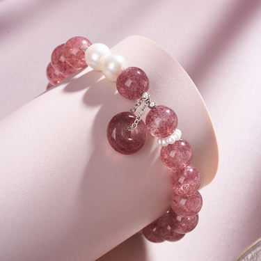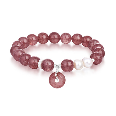粉玉纳安 草莓晶平安扣手串-0268