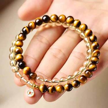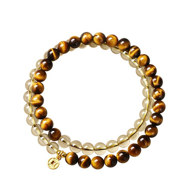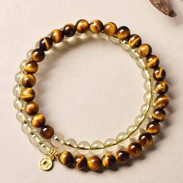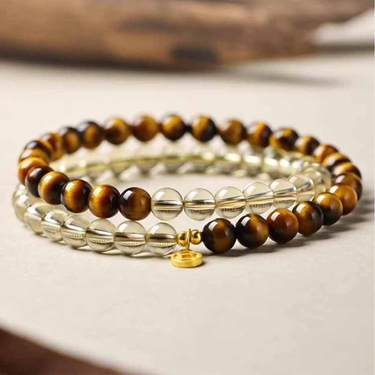 天然黄水晶虎睛双圈手串